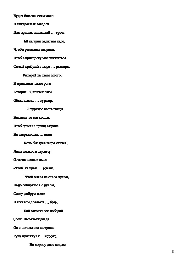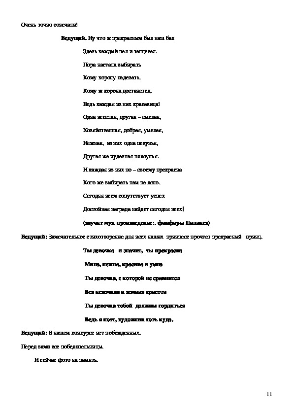 Ведущий: Замечательное стихотворение для всех наших принцесс прочтет прекрасный принц.