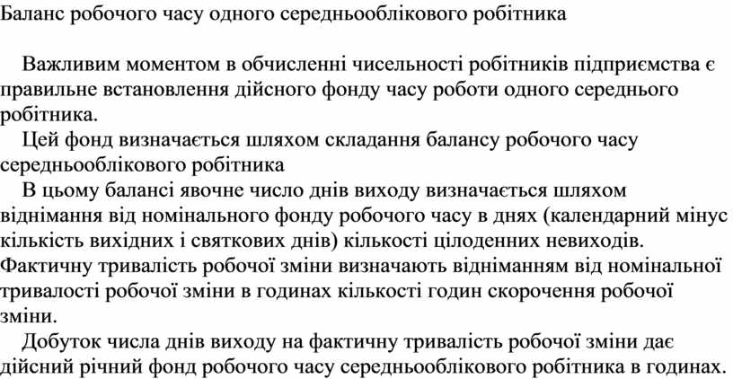 Цей фонд визначається шляхом складання балансу робочого часу середньооблікового робітника