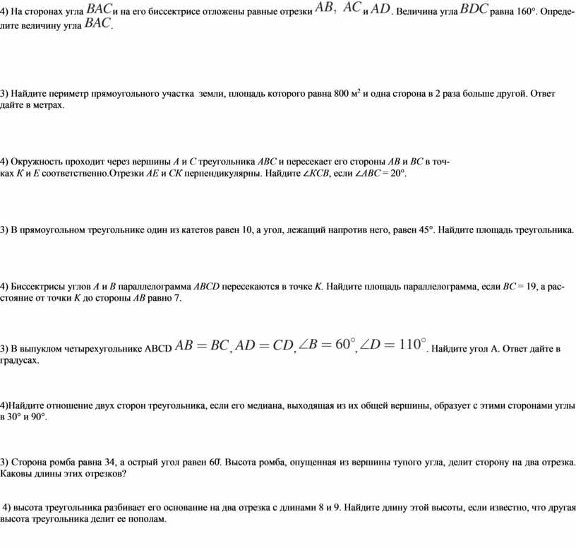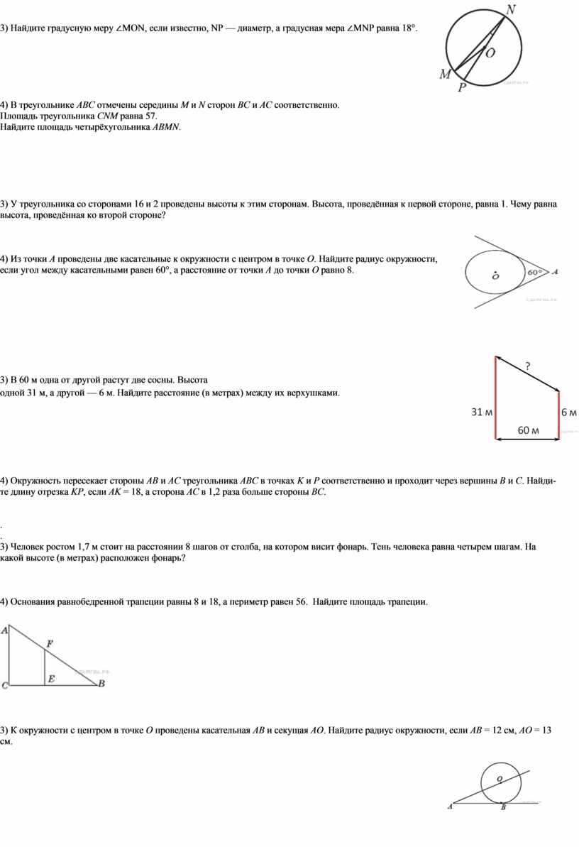 Примерные задачи (№3 и №4) зачета по геометрии 8