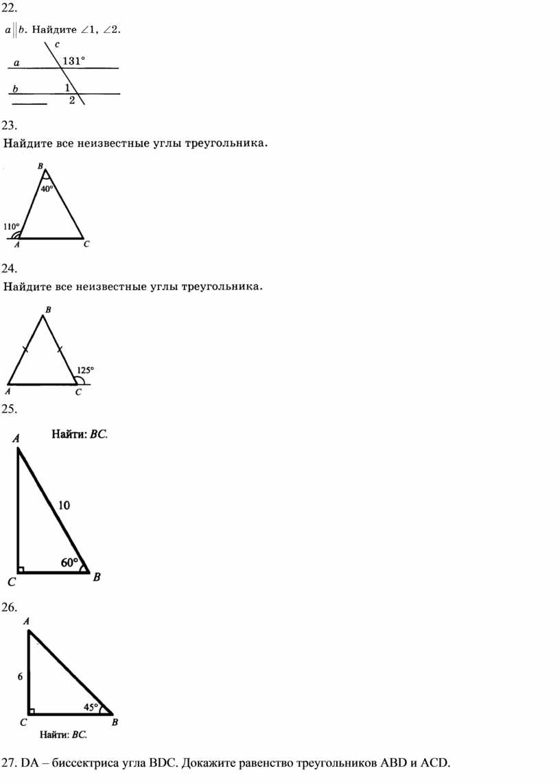 27. DA – биссектриса угла BDC. Докажите равенство треугольников ABD и ACD.