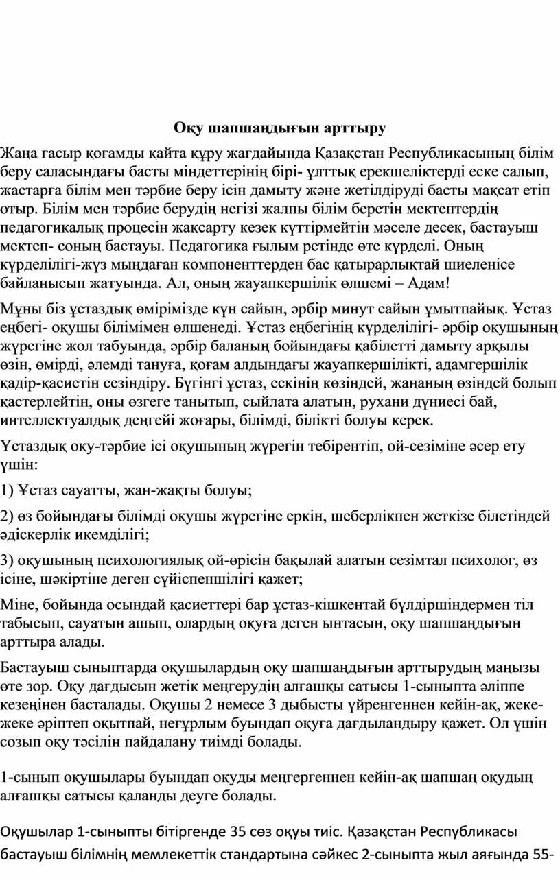 1-сынып оқушылары буындап оқуды меңгергеннен кейін-ақ шапшаң оқудың алғашқы сатысы қаланды деуге болады.