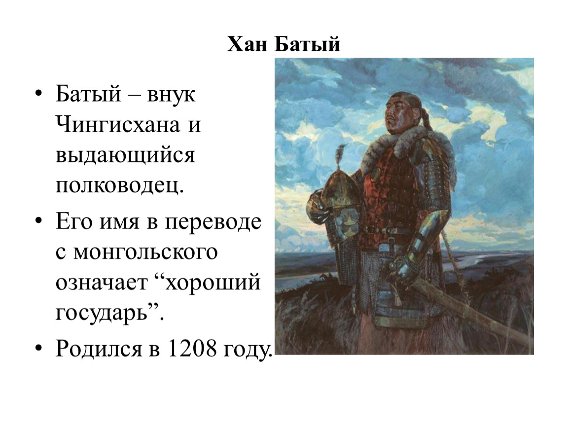 Батый – внук Чингисхана и выдающийся полководец.