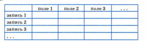 Основной информационной единицей реляционной БД является таблица. База данных может состоять из одной таблицы (одно табличная БД) или из множества взаимосвязанных таблиц (многотабличная БД). Структурными составляющими таблицы являются записи и поля.