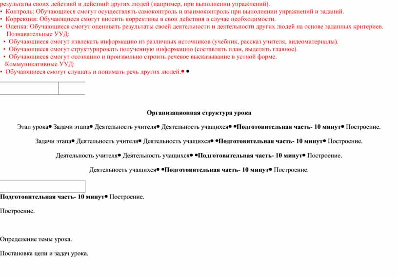 Организационная структура урока