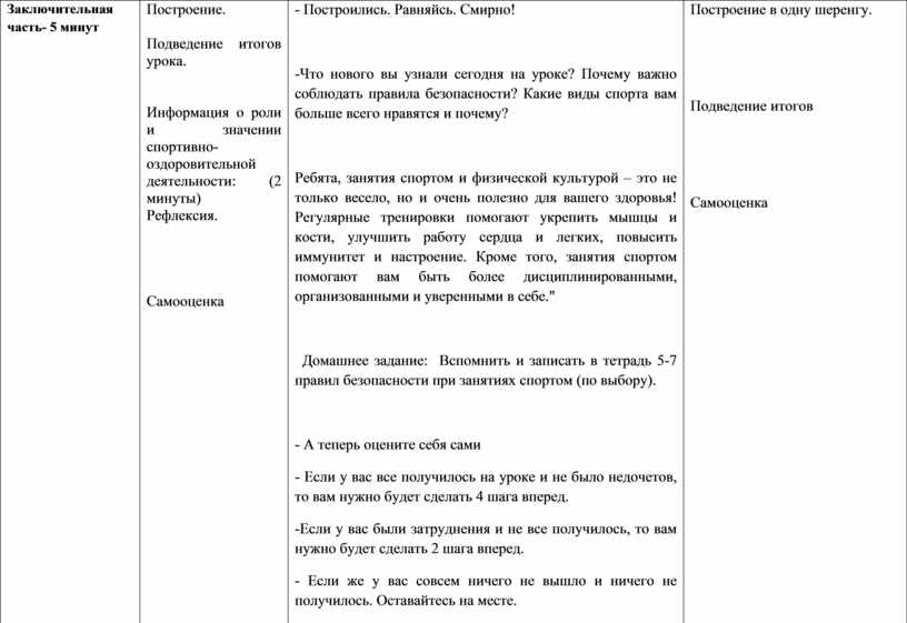 -Что нового вы узнали сегодня на уроке? Почему важно соблюдать правила безопасности? Какие виды спорта вам больше всего нравятся и почему?