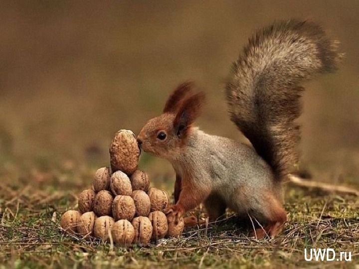 Летом и осенью она запасает корм на зиму. Свои запасы развешивает на ветвях деревьев, прячет в трещинах пней и закапывает в землю. Иногда белка забывает о каком – либо орехе или жёлуде в норке под землёй, из него вырастает ореховый куст или молодой дубок.Белка песенки поёт и орешки все грызёт