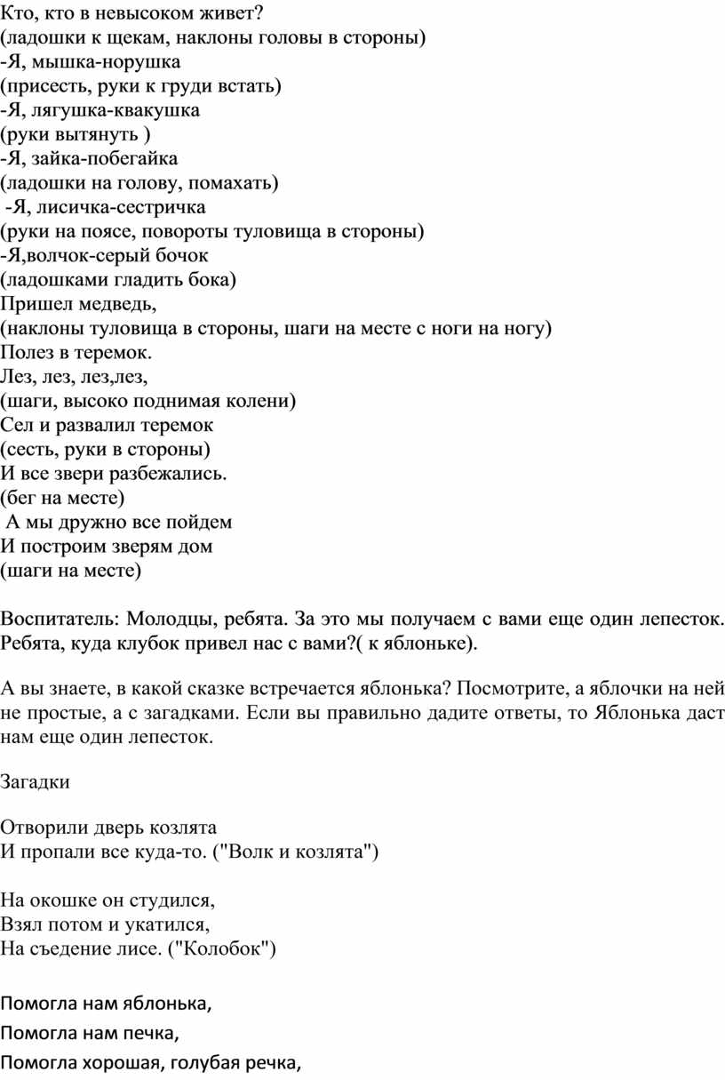 Воспитатель: Молодцы, ребята. За это мы получаем с вами еще один лепесток. Ребята, куда клубок привел нас с вами?( к яблоньке).
