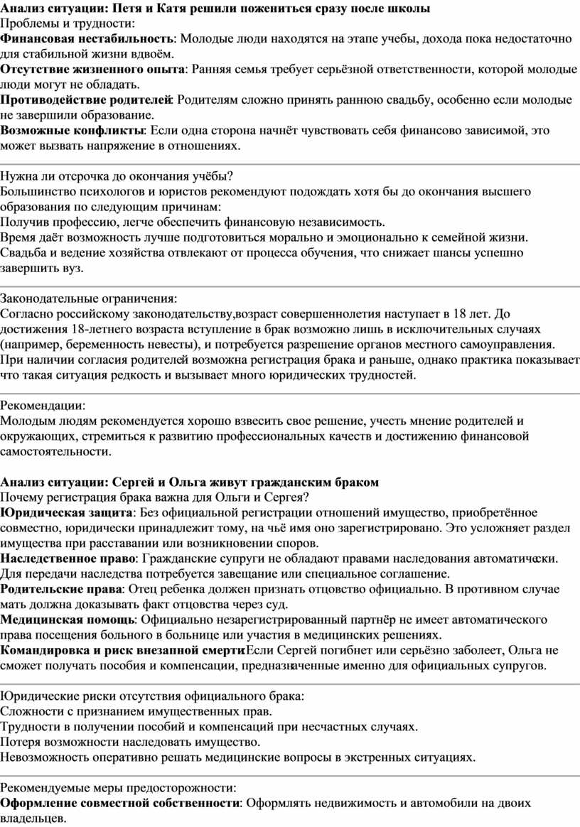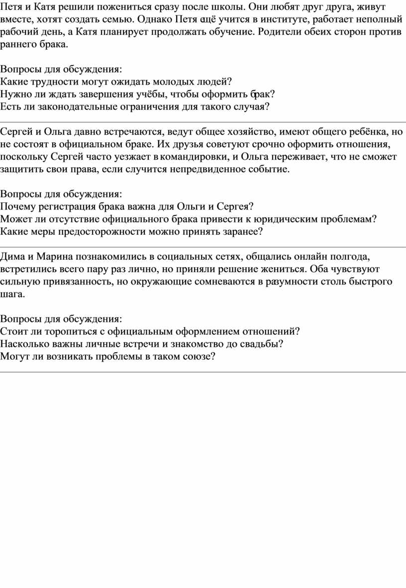 Анализ ситуации: Петя и Катя решили пожениться сразу после школы