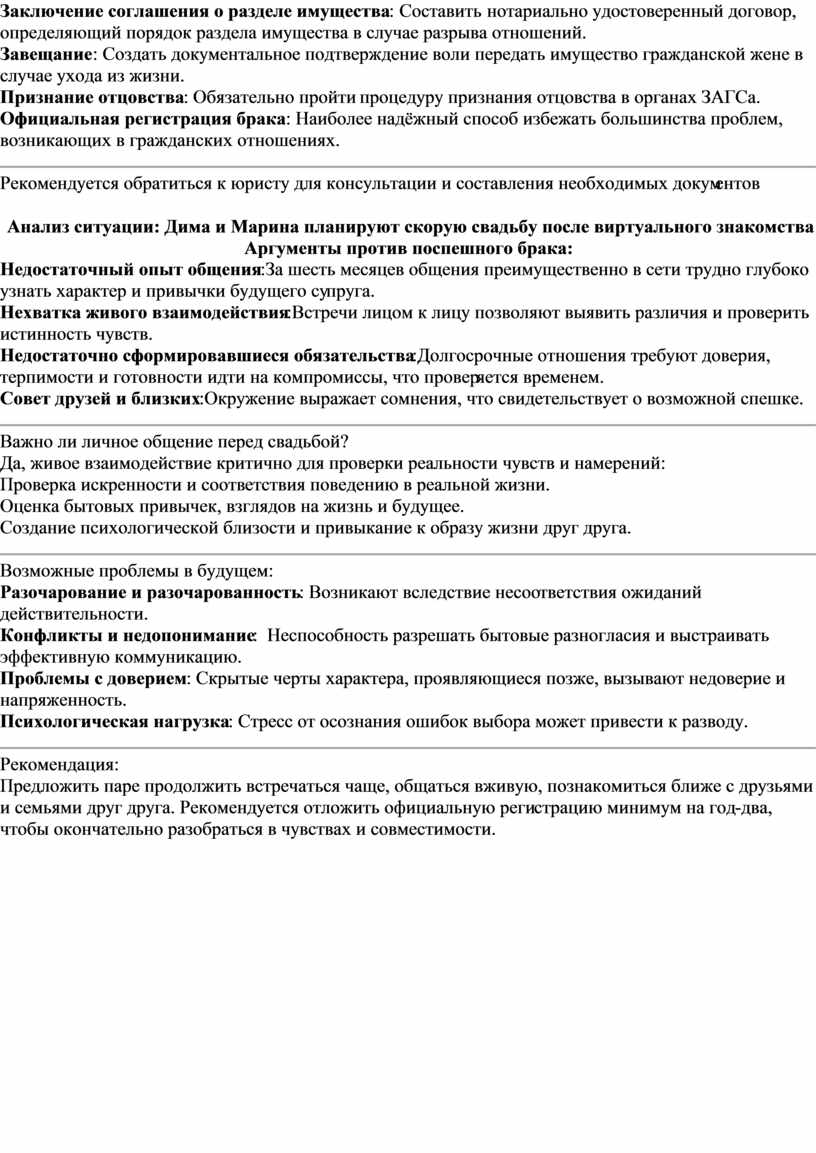 Анализ ситуации: Дима и Марина планируют скорую свадьбу после виртуального знакомства
