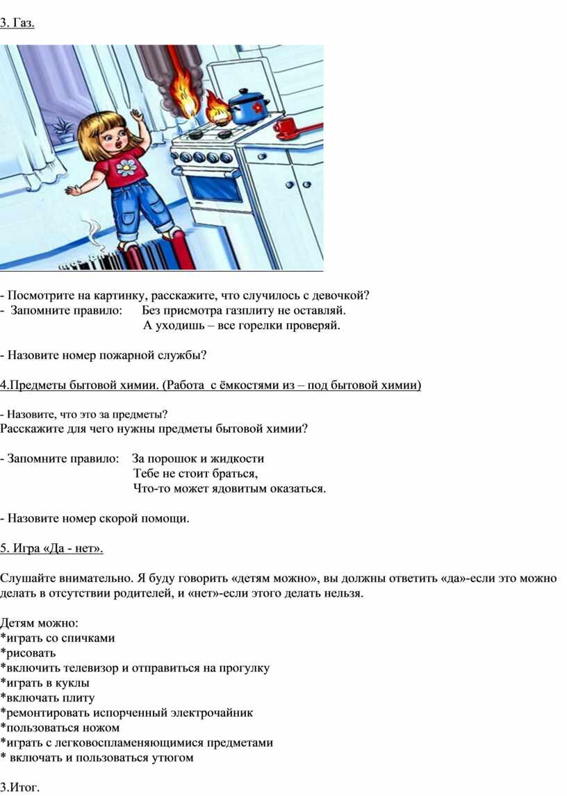 Цель: Познакомить с опасностями, подстерегающими детей в собственном доме, с правилами поведения, когда родителей дома нет. Развивать познавательную активность и воображение, самостоятельность, ответственность, умение объяснить собственное поведение. Воспитывать бережное отношение к своему здоровью, смелость, находчивость, решительность.