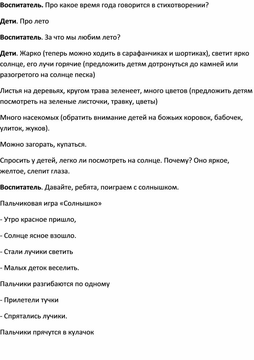 Воспитатель. Давайте, ребята, поиграем с солнышком.