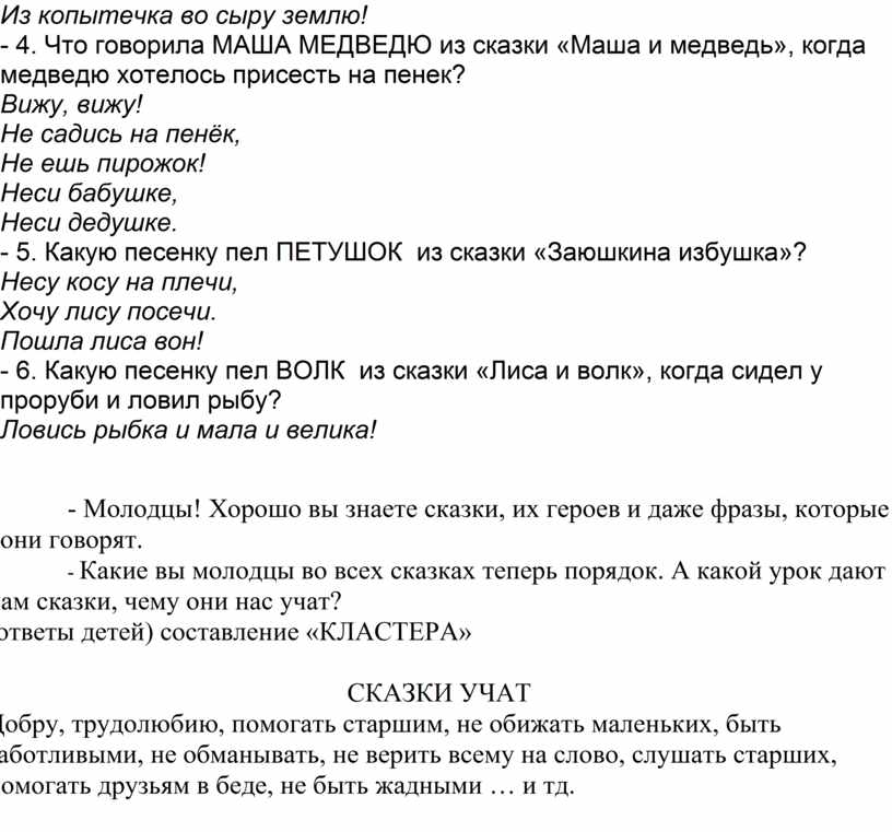 - 4. Что говорила МАША МЕДВЕДЮ из сказки «Маша и медведь», когда медведю хотелось присесть на пенек?