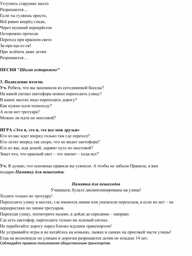 Уч. Я думаю, что основные правила вы усвоили. А чтобы не забыли Правила, я вам подарю Памятку для пешеходов.