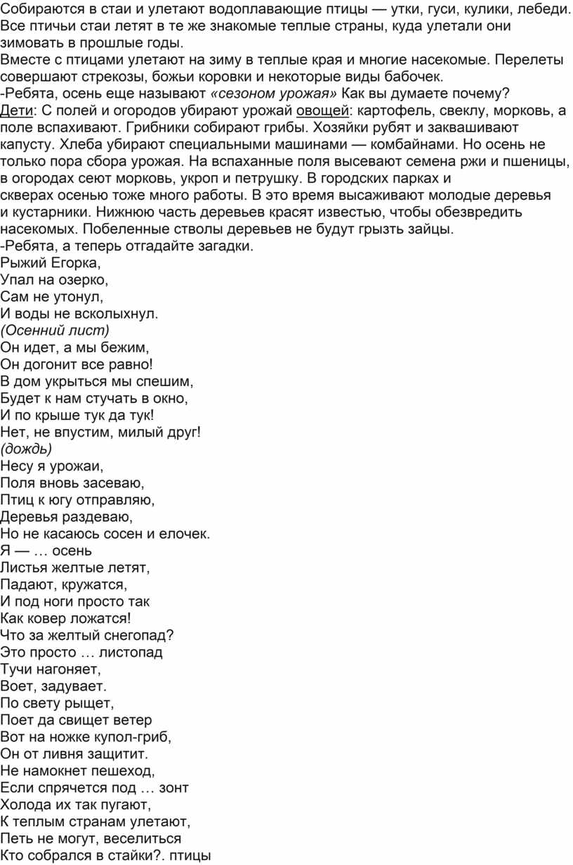Дети. Солнышко реже светит, день становится короче, листья с деревьев опадают, часто бывает туман, улетают птицы в дальние края.
