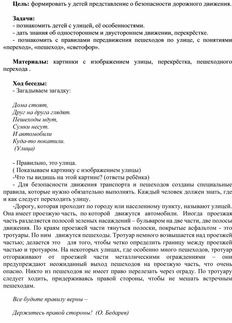 Цель: формировать у детей представление о безопасности дорожного движения.