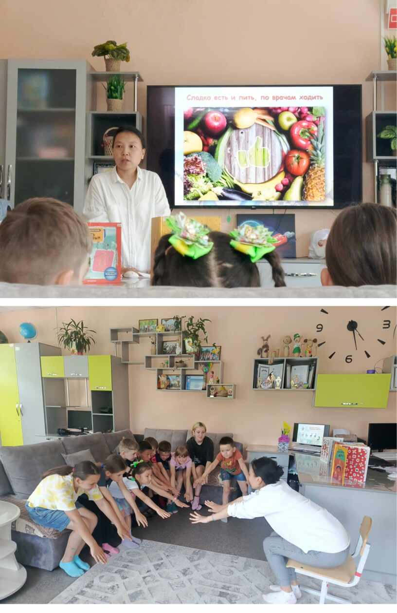 Для воспитанников ГКУ СРЦН «Надежда была организована слайд- беседа и викторина «Здоровые МЫ»: увлекательное познавательное мероприятие, посвящённое важной теме – заботе о здоровье. Участникам мероприятия в игровой форме было напомнено, как правильно питаться, зачем нужна зарядка, какие привычки полезны, а какие – вредные. Поговорили о таких страшных привычках, которые вызывают привыкание, как курение, алкоголь и наркотики. В ходе проведения викторины ребята отгадали пословицы в туре «Хорошая пословица поднимет любого молодца», выполнили задания «Мозгового штурма», нашли ответ на вопрос из «Черного ящика» и приготовили «Овощной салат» из представленных «ингредиентов». Завершилось мероприятие тематическим обзором книг из фонда модельной центральной библиотеки, где были представлены издания о здоровом образе жизни.