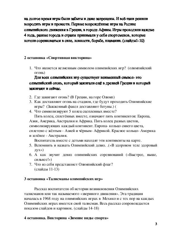 • Формирование установок на здоровый образ жизни.Беседа "Беседа об истории Зимних Олимпийских игр"