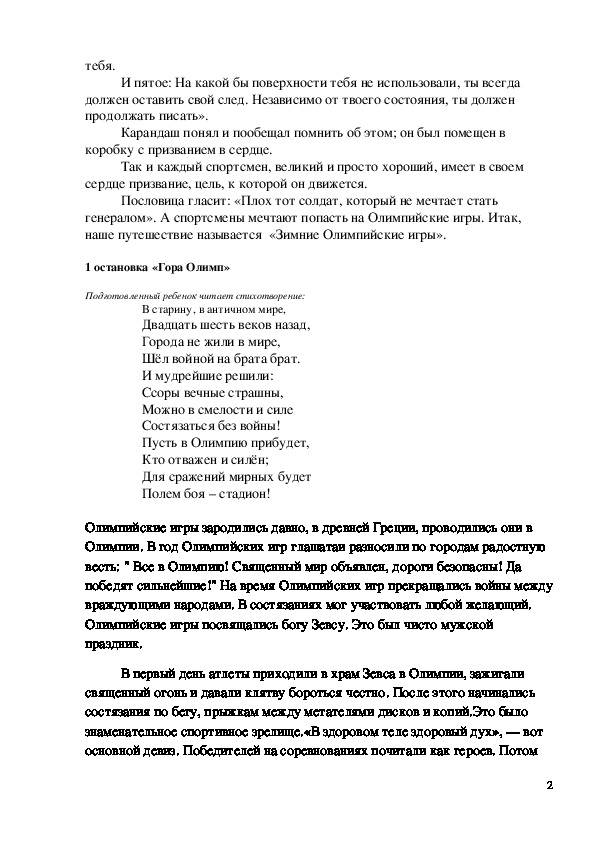 Цель: Формировать у дошкольников представления об Олимпийских играх