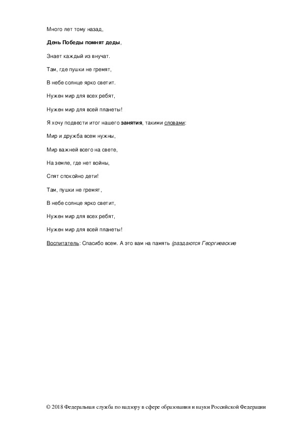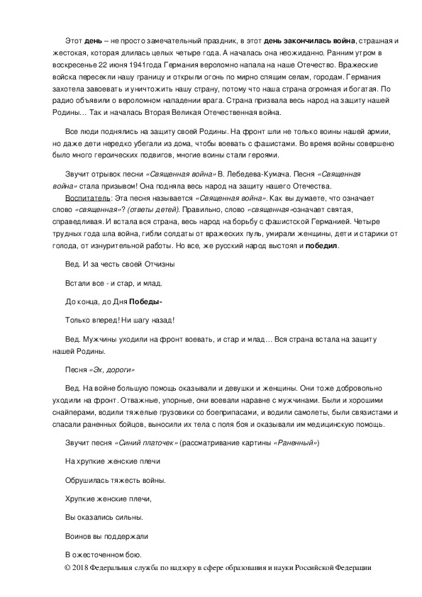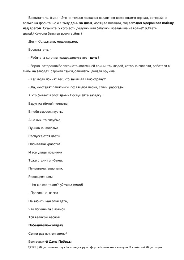 © 2018 Федеральная служба по надзору в сфере образования и науки Российской ФедерацииВоспитатель. 9 мая Это не только праздник солдат, но всего нашего народа, который не