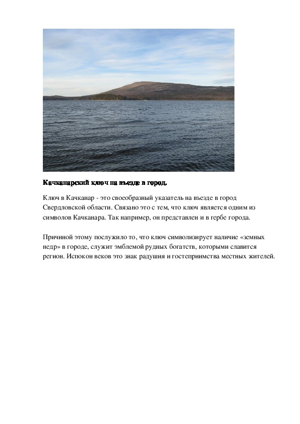 Ключ в Качканар это своеобразный указатель на въезде в город