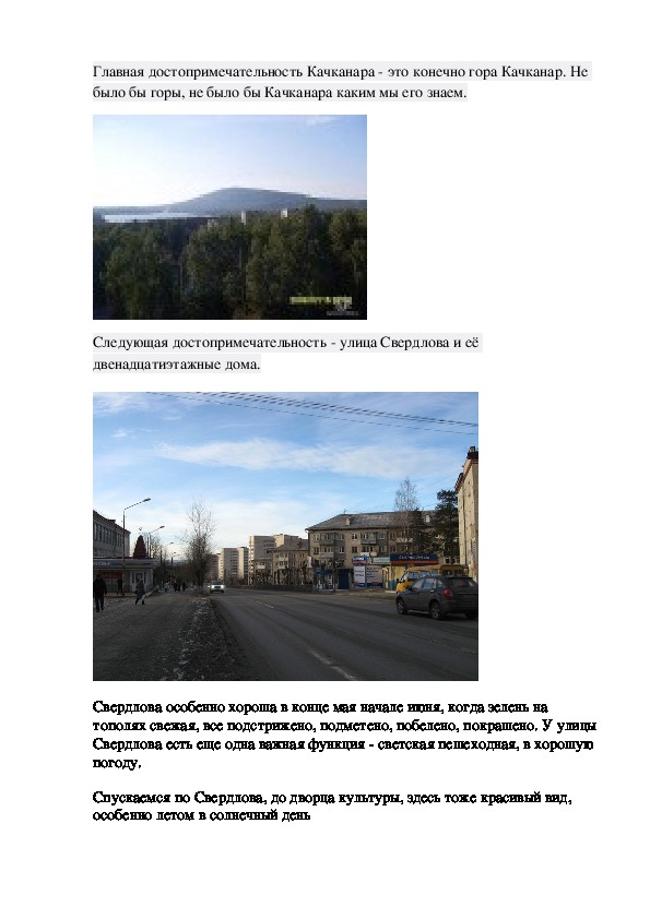Достопримечательности нашего города.Главная достопримечательность Качканара это конечно гора Качканар. Не