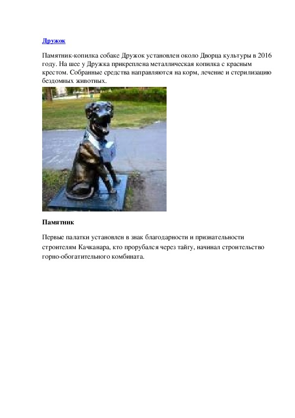 Памятниккопилка собаке Дружок установлен около Дворца культуры в 2016