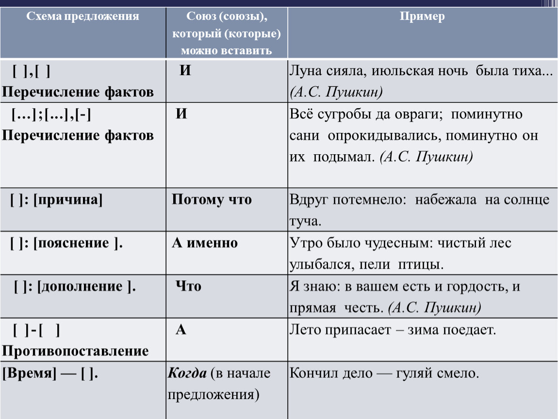 10) если части предложения тесно связаны по смыслу и обозначают события, происходящие одновременно.