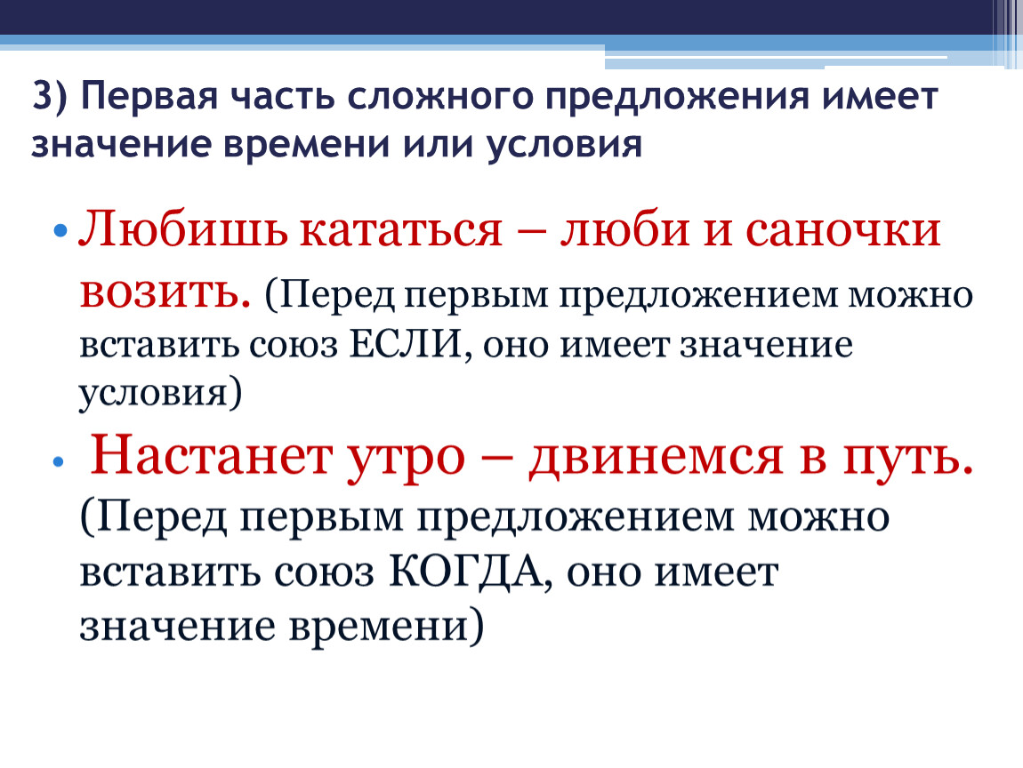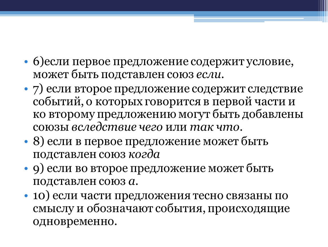 6)если первое предложение содержит условие, может быть подставлен союз если.