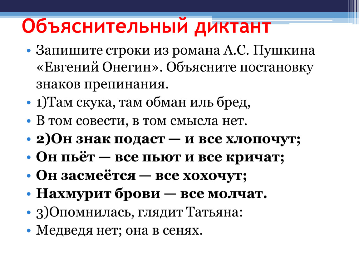Запишите строки из романа А.С. Пушкина «Евгений Онегин». Объясните постановку знаков препинания.