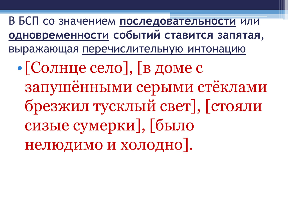 В БСП со значением последовательности или одновременности событий ставится запятая, выражающая перечислительную интонацию