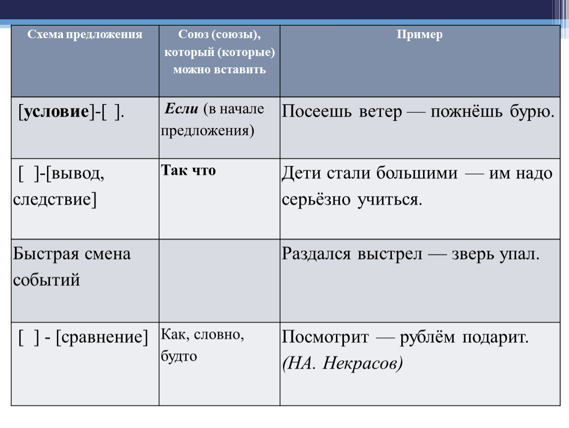 [условие]-[ ]. | Если (в начале предложения) | Посеешь ветер — пожнёшь бурю. |