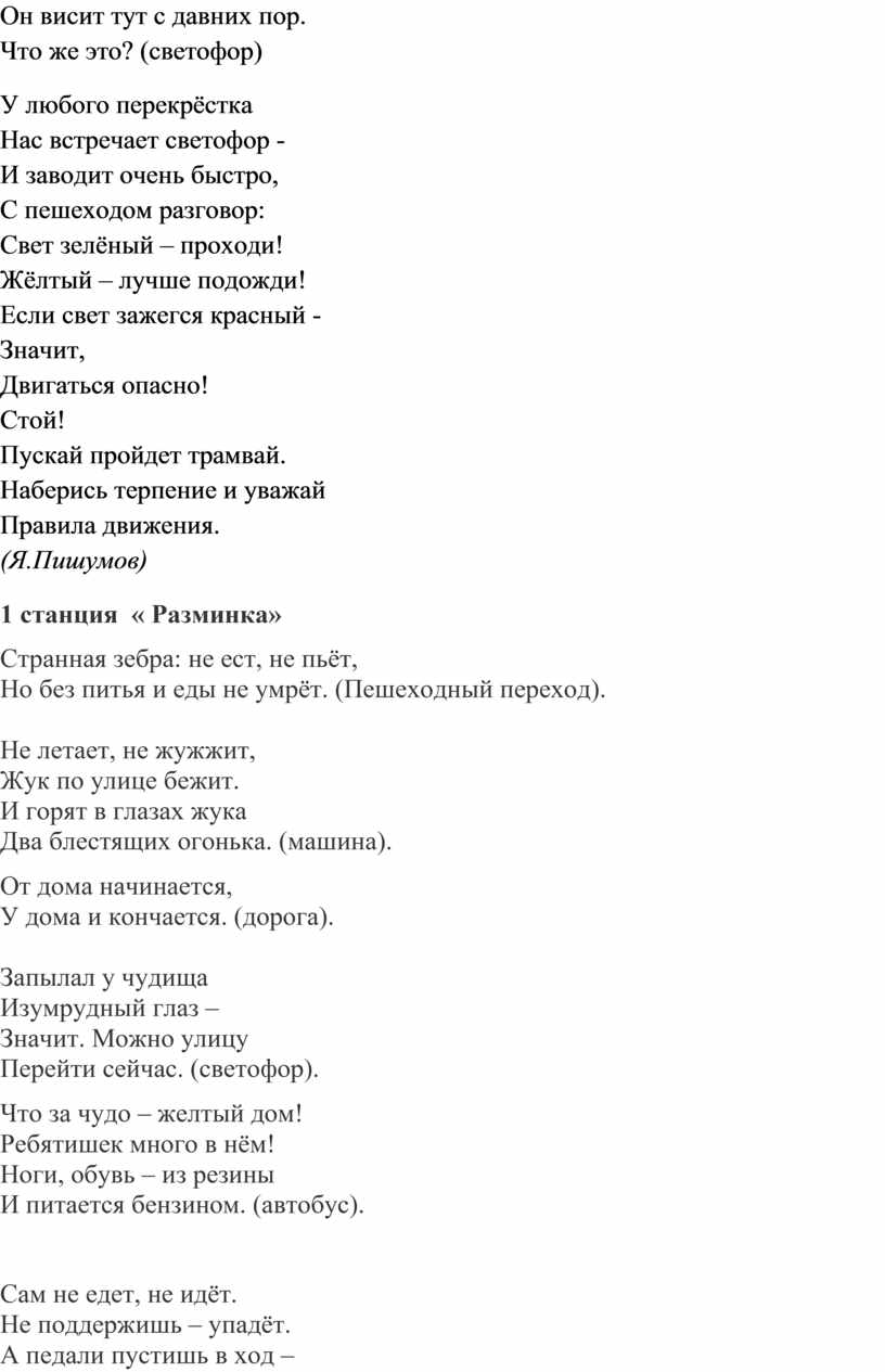 посёлков. Для того, чтобы движение было безопасным, действует строгий закон - Правила