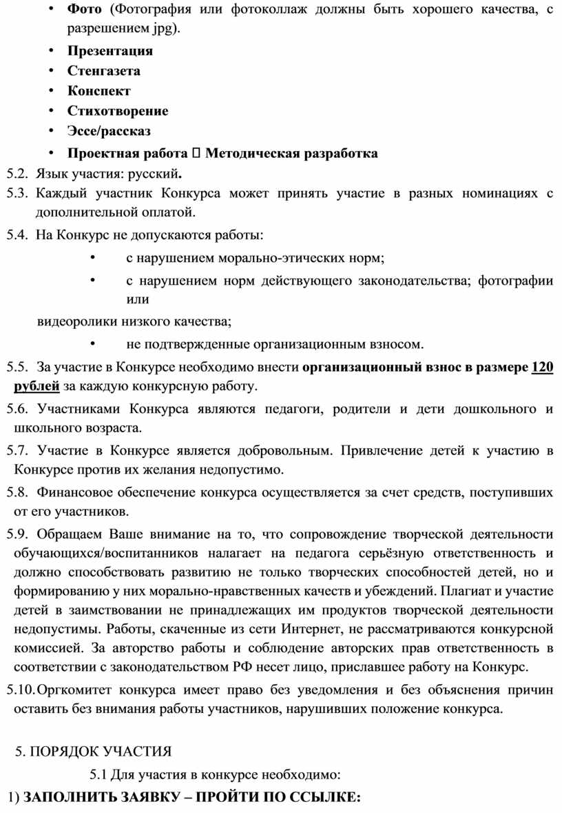 5.5. За участие в Конкурсе необходимо внести организационный взнос в размере 120 рублей за каждую конкурсную работу.