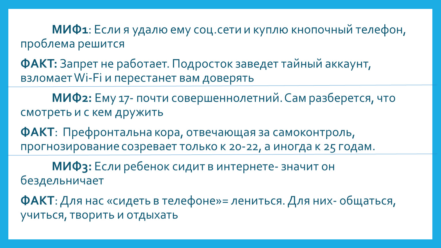МИФ1: Если я удалю ему соц.сети и куплю кнопочный телефон, проблема решится
