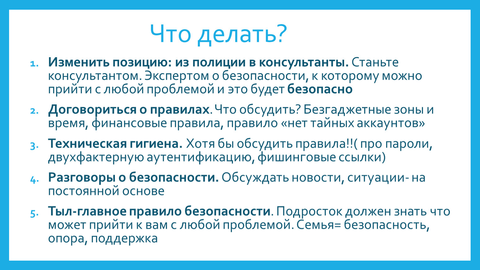 Тыл-главное правило безопасности. Подросток должен знать что может прийти к вам с любой проблемой. Семья= безопасность, опора, поддержка