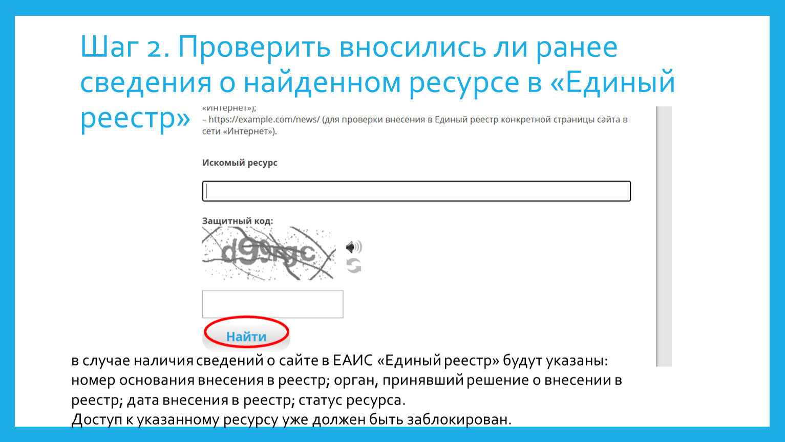 Шаг 2. Проверить вносились ли ранее сведения о найденном ресурсе в «Единый реестр»