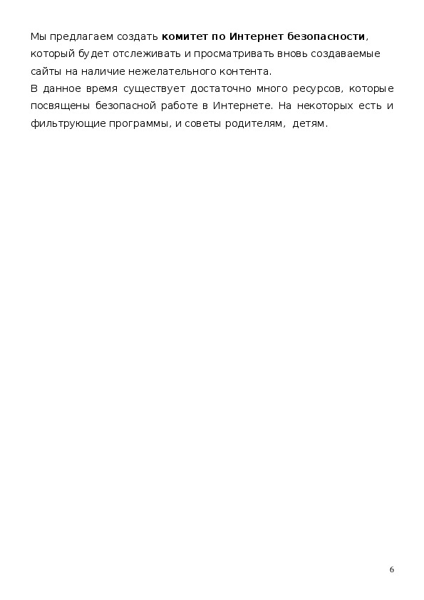 5Мы предлагаем создать комитет по Интернет безопасности,
