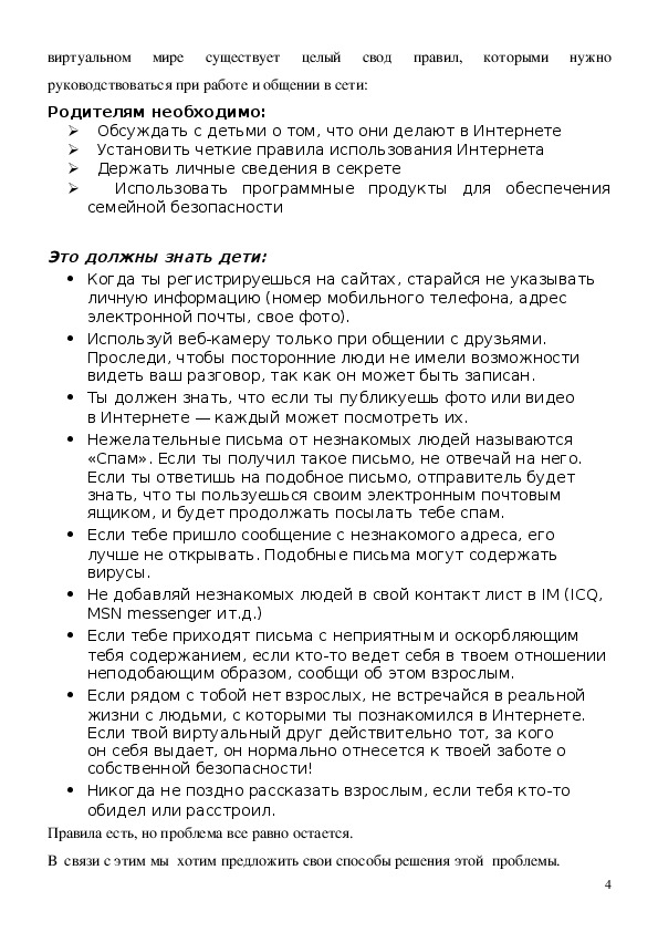 Мы обращаемся к проблеме информационной безопасности для школьников в Интернет, поскольку на наш взгляд эта проблема приобретает все большую актуальность для здоровья и интеллектуального, нравственного развития молодежи. Вряд ли кто-то будет оспаривать факт, что в XXI веке компьютеры и Интернет стали неотъемлемым фактором существования взрослого общества. Что касается детей, то те же самые компьютеры и Интернет являются не только прекрасным инструментом обучения и развлечения, но и таят в себе реальную опасность. Эту опасность представляют киберхулиганы, которые могут использовать Интернет, чтобы изводить или запугивать других людей. "Кибер-хищники", которые умело ведут ничего не подозревающих чад с одного сайта на другой, завлекая обещаниями заманчивой информации, а в результате ребенок оказывается на порносайте, из которого выхода нет, во всяком случае, "закрыть" его оказывается весьма проблематично. Кроме того, известны случаи детской смертности от "передозировки" компьютерными играми. Социальные сети заменяют реальное общение на виртуальное. Существует масса сайтов, пропагандирующих насилие, изготовление наркотиков, суицид.