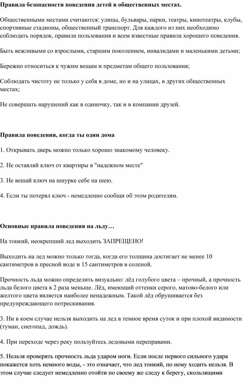 Правила безопасности поведения детей в общественных местах.