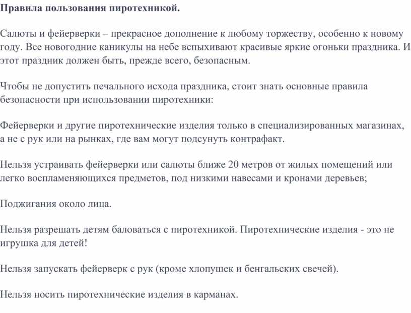 Правила пользования пиротехникой.
