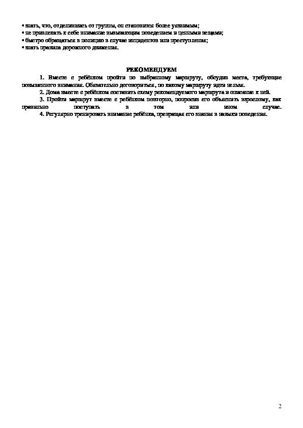 1. Вместе с ребёнком пройти по выбранному маршруту, обсудив места, требующие