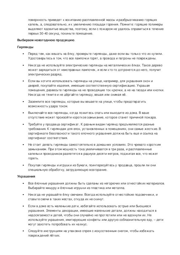 Все ёлочные украшения должны быть сделаны из негорючих или огнестойких материалов.