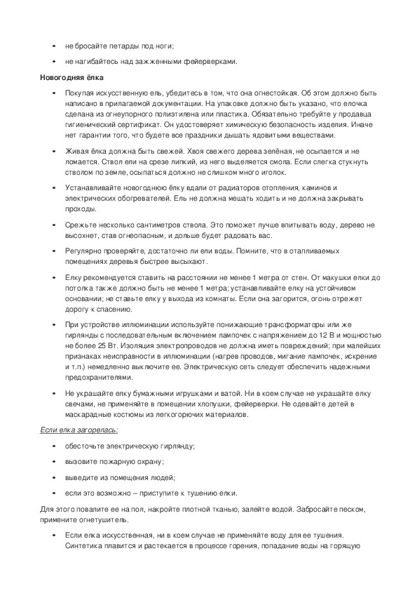 основании; не ставьте елку у выхода из комнаты. Если она загорится, огонь отрежет