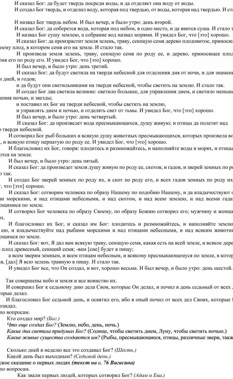 Библейское сказание о первых людях (текст на с. 76 Вигасина)