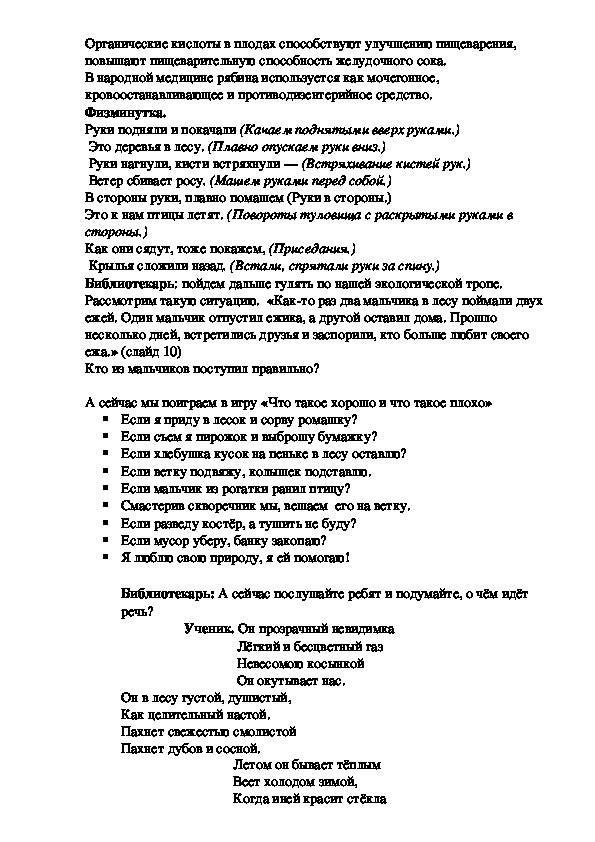 Я предлагаю вам послушать правила поведения в лесу.(слайд 11)