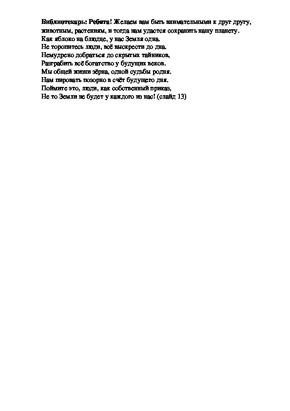 Не то Земли не будет у каждого из нас! (слайд 13)