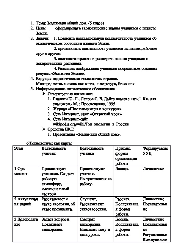 Барабинск, 20171. Тема: Землянаш общий дом. (5 класс)