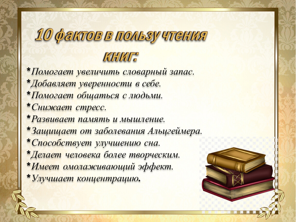 «Хорошая книга — точно беседа с умным человеком. Читатель получает от нее знания и обобщение действительности, способность понимать жизнь». Толстой А. «Чтение – это один из истоков мышления и умственного развития». В.А. Сухомлинский. «В книгах заключено особое очарование; книги вызывают в нас наслаждение: они разговаривают с нами, дают нам добрый совет, они становятся живыми друзьями для нас». Петрарка Ф.