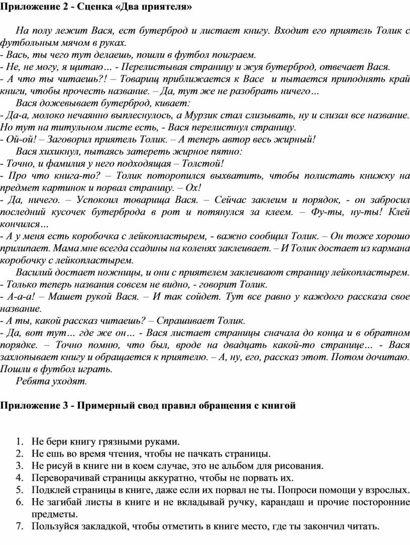 - Скажите, ребята, так ли надо обращаться с книгами? В чем были не правы Вася и Толик и, как следовало поступить? /В результате появляется свод правил общения с книгой см. Приложение 3/