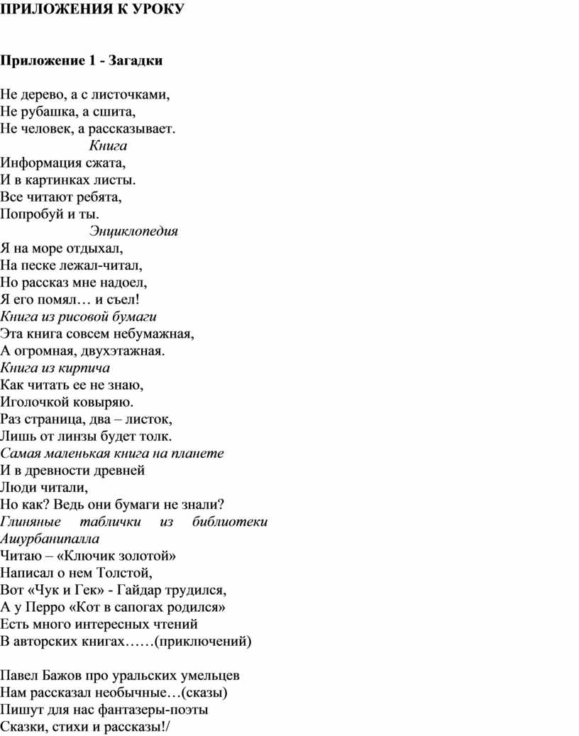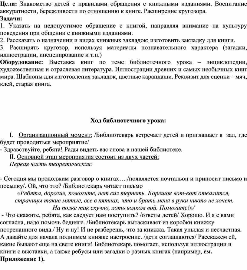 Оборудование: Выставка книг по теме библиотечного урока – энциклопедии, художественная и отраслевая литература. Иллюстрации древних и самых необычных книг мира. Шаблоны для изготовления закладок, цветные карандаши. Реквизит для сценки – мяч, клей, старая книга.
